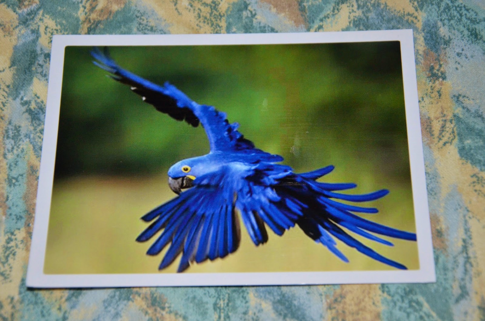 Two Brazilian Birds in one day! Of all the Brazilian birds, this is possible the most iconic - a Blue and Yellow Macaw, or the Arara Blue. Santiago is a student in engineering and sent me this postcard after my request for native birds.